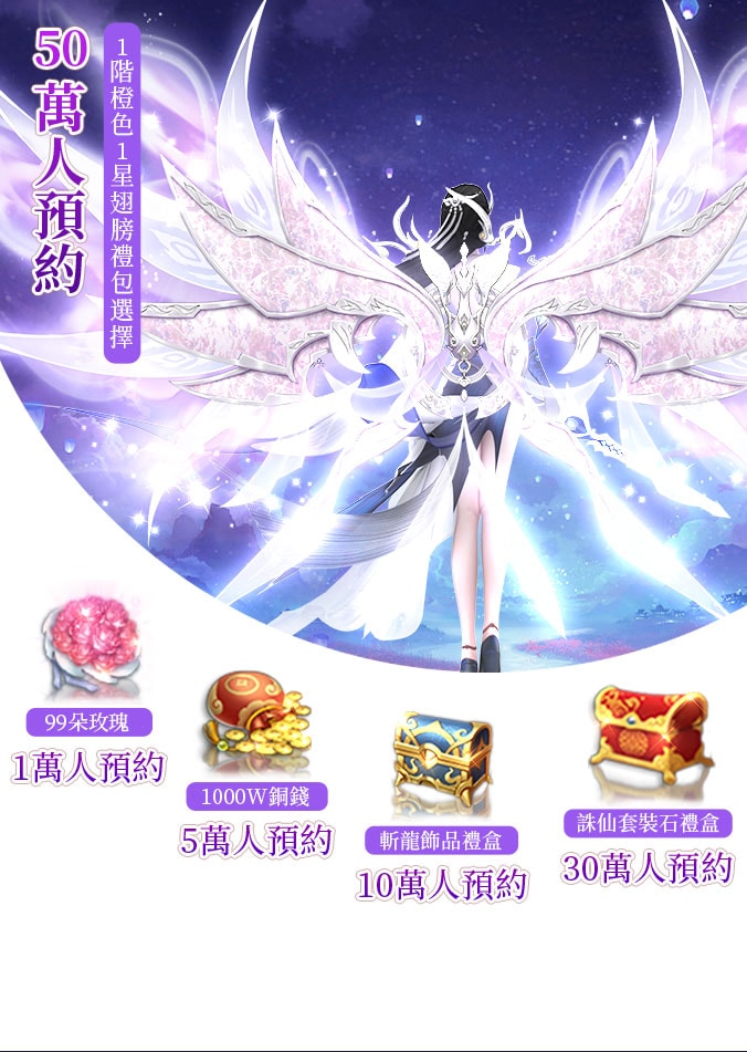 - 預約頁面對外即刻生效,遊戲上線時間為預約活動結束時間。